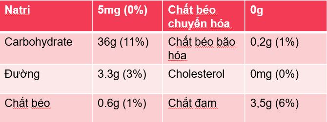 Thông tin dinh dưỡng