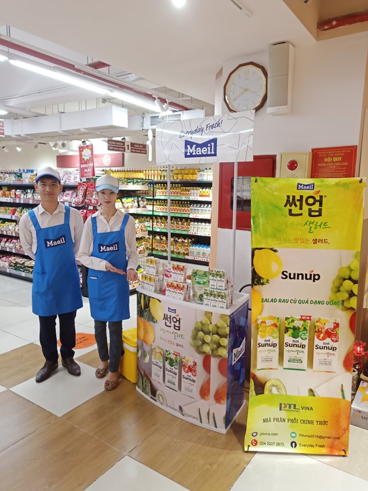 Công ty PTL International Vina, đơn vị nhập khẩu và phân phối độc quyền sản phẩm Salad rau củ quả dạng uống Sunup Hàn Quốc đã tổ chức chương trình giới thiệu sản phẩm Sunup đến với người tiêu dùng tại điểm siêu thị Fujimart 142 Lê Duẩn và được nhiều khách hàng đón nhận, ủng hộ.