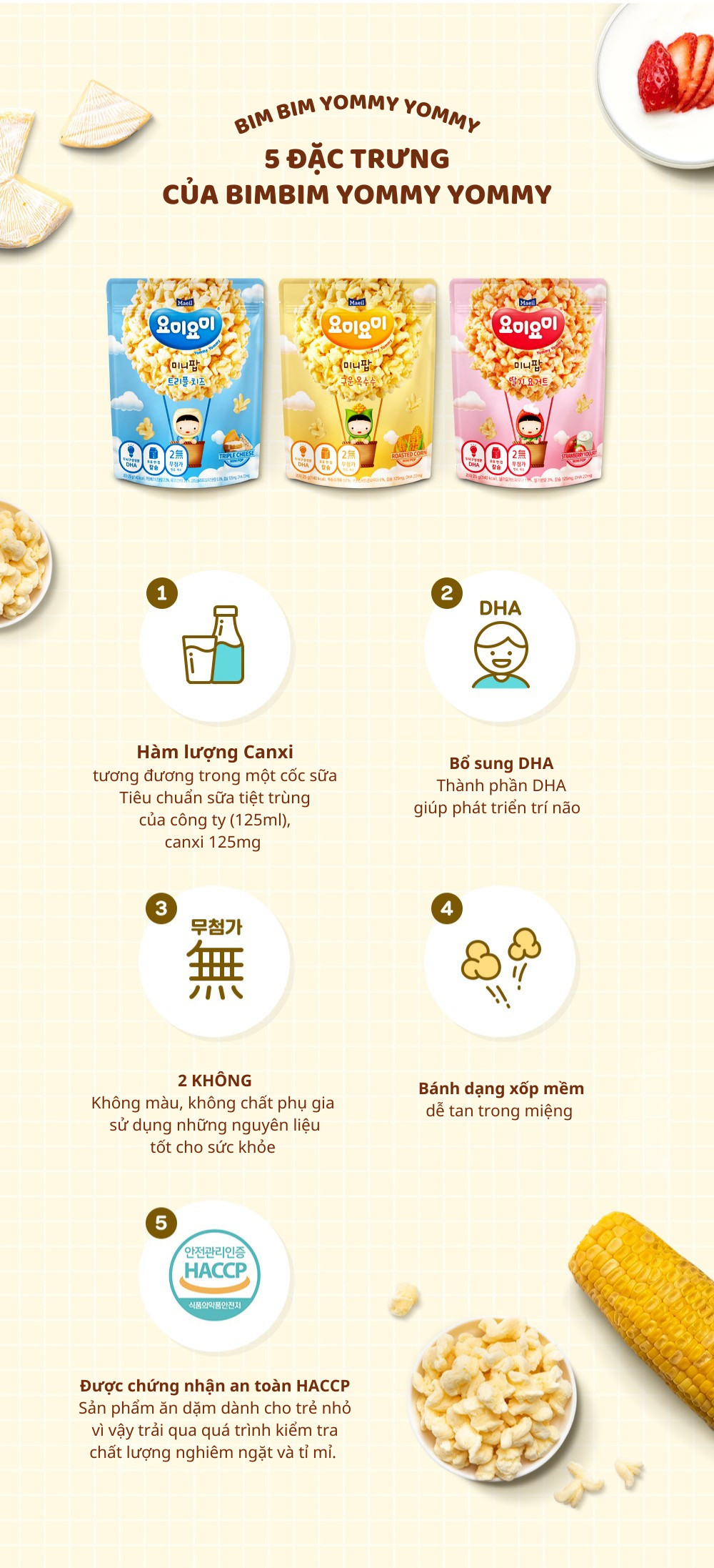 Bim Bim Yommy Yommy bổ sung DHA cho bé từ 12 tháng tuổi - Một sản phẩm mới đến từ tập đoàn Maeil Dairies - tập đoàn bơ sữa No.1 tại Hàn Quốc, với phương châm kinh doanh luôn hướng tới mục tiêu xây dựng ngành công nghiệp sữa và các sản phẩm hữu cơ (Organic) dinh dưỡng hàng đầu bằng những nỗ lực trong nghiên cứu và phát triển sản phẩm chất lượng cao, có lợi cho sức khỏe người tiêu dùng. Maeil đề cao tính dinh dưỡng trong từng sản phẩm nên lựa chọn các sản phẩm của thương hiệu này, các mẹ có thể hoàn toàn yên tâm cho sức khỏe toàn gia đình.