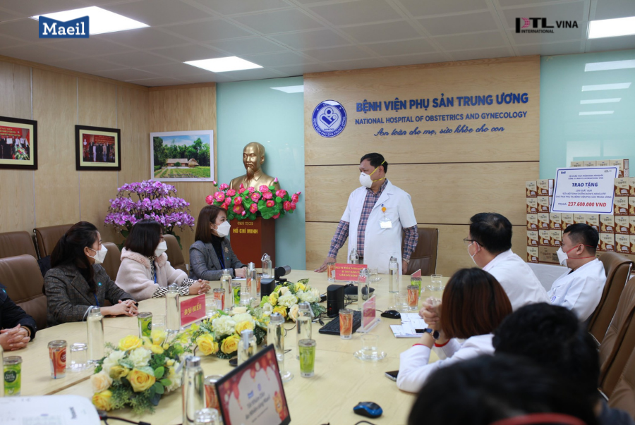 Ông Trần Danh Cường – Giám đốc bệnh viện Phụ Sản Trung Ương chia sẻ khó khăn trong công tác phòng chống dịch Covid -19 đồng thời gửi lời cảm ơn sâu sắc tới đại diện nhãn hàng Maeil.