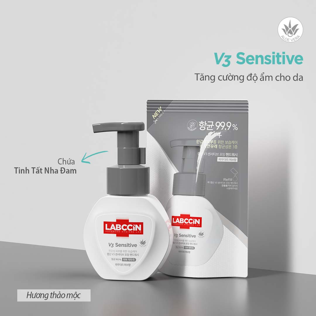 1. Nước rửa tay LABCCiN V3 Sensitive Foaming, 250ml Tăng cường độ ẩm trên da - Hương Thảo Mộc
